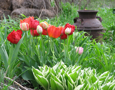 What a wind though! There is a milk can under the bird feeder arbor with a big, flat, block of wood on it. I fill feeders there. It has been in place since a year ago winter and never budged. Last night the wind dumped it in the flowerbed. Good thing there was an old bottomless egg basket over the nice new hosta growing there or it would have been crushed.