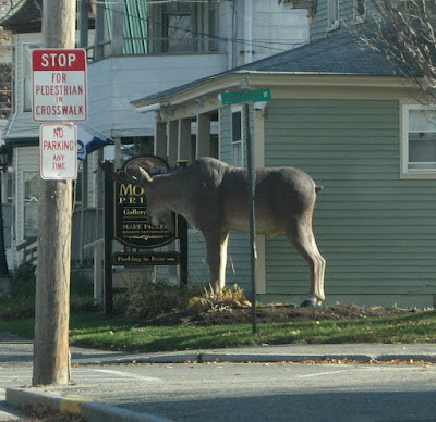 And we did see moose. Moose on realty signs. Moose on stores. Moose on township names and lakes. Moose statues, moose figurines, moose menus. I even saw the neck and ear of a road killed moose on I 95.